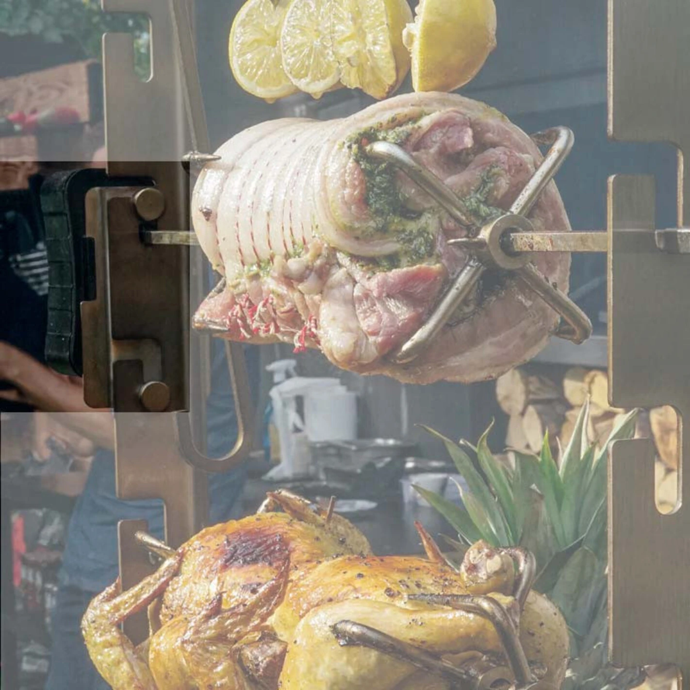 Un tournebroche permet de varier les plaisirs et de réaliser des cuissons lentes à cœur, homogènes et sans contact avec les flammes. La viande, le poisson ou les légumes tournent et cuisent doucement en plus de s’imprégner des fumées aromatiques développées par la combustion du feu de bois.
